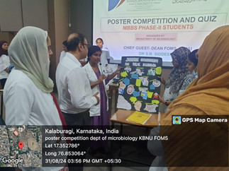 “Poster Competition and Quiz” was organized by department of Microbiology KBNU-FOMS on 31/08/24 from 3:00 pm to 4:00 pm in Lecture Hall-1 of Department of Anatomy for Phase-II MBBS students. Theme of the competition was “SAMPLE COLLECTION AND TRANSPORTION OF BACTERIAL, VIRAL, PARASITIC AND FUNGAL INFECTIONS” Students were divided into 4 groups and assigned one mentor for each group. Groups were as follows