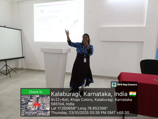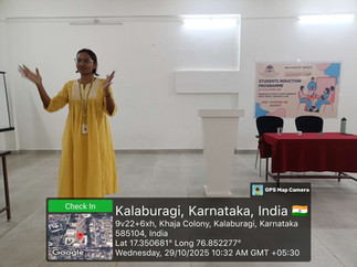 Further sessions included Time Management by Dr. Atungbou (Department of Sociology) and Communication Skills by Ms. Zainab (Department of English). Ms. Ashwathy (Counsellor) led a session on Emotional Intelligence and Stress Management, followed by Dr. Heena Mubeen, who introduced SWAYAM and MOOCs. Dr. Sameena Sindagikar (Department of Sociology) sensitized students about the Internal Complaints Committee (ICC), emphasizing student welfare and inclusivity.