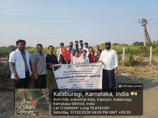 The Department of Community Medicine, Faculty of Medical Sciences, KBN University, conducted a Tree Plantation activity on 07/02/2026 from 02:00 pm to 05:00 pm at Uplaon village, which has been adopted under the NMC Family Adoption Program. The activity was organized to promote environmental sustainability, improve green cover, and create awareness among the community about the importance of trees for health and ecological balance. The program also aimed to strengthen the relationship between the medical college and the adopted village through meaningful community engagement. The event was organized under the supervision of Dr. M. A. Fahim, Associate Professor, Department of Community Medicine, FOMS, KBNU.